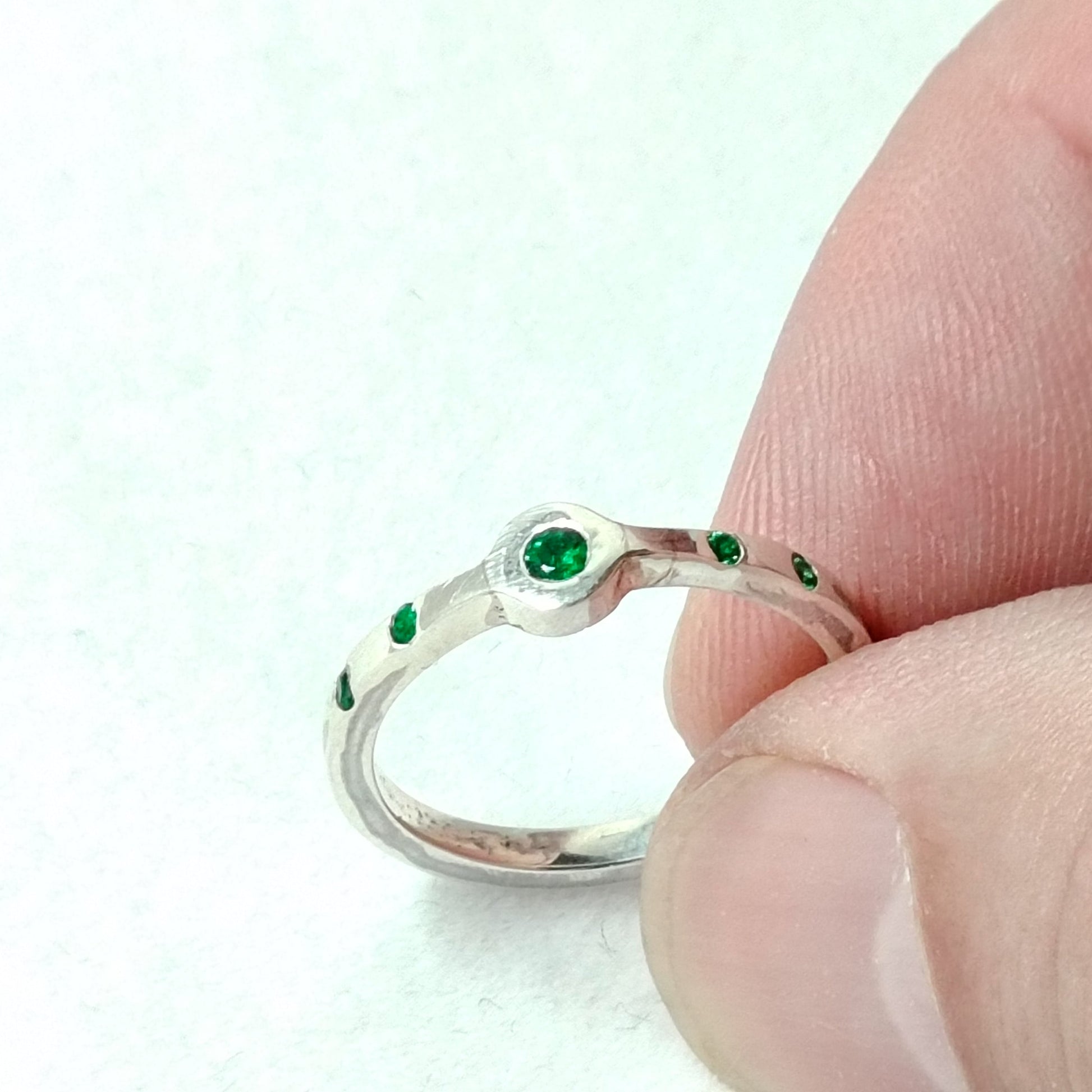 Penta Ring with 5 Emeralds in Sterling Silver Squared Band